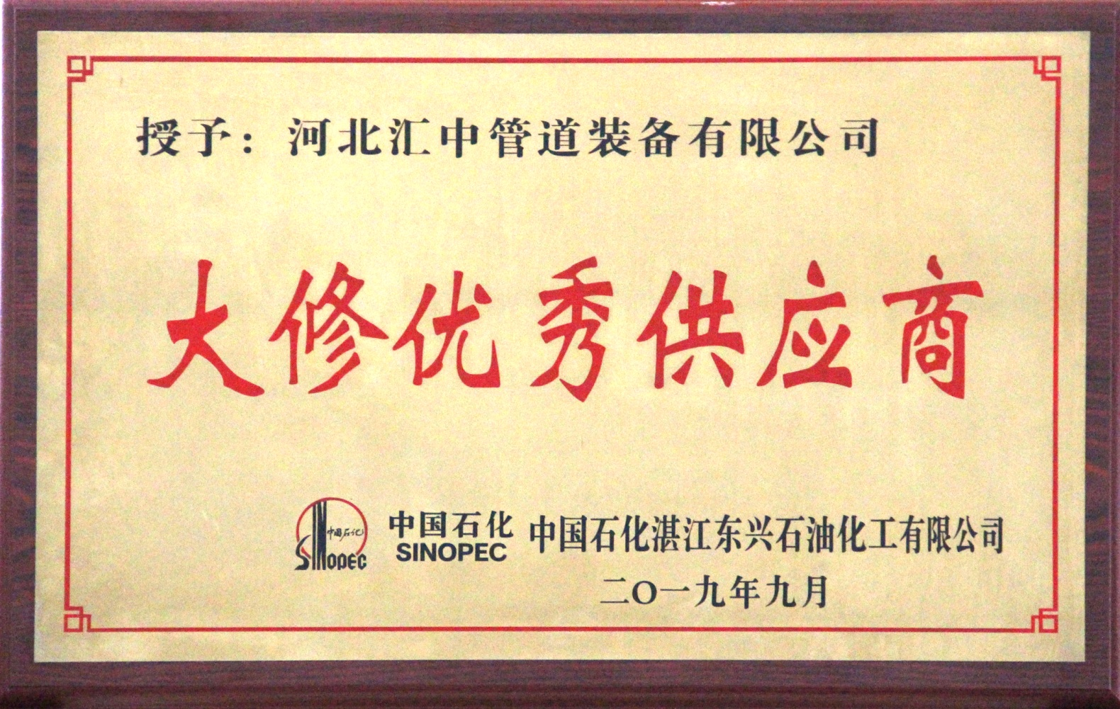 Our company was rated as "Excellent Supplier" of Sinopec Zhanjiang Dongxing Company